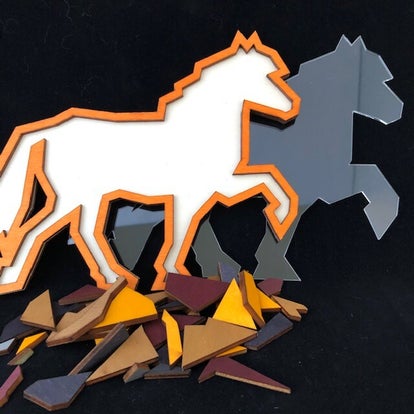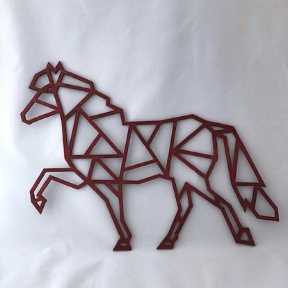Eigen ontwerp geometrische ijslanders van hout, beschikbaar in 5 gangen: tölt, telgang, draf, stap of galop.